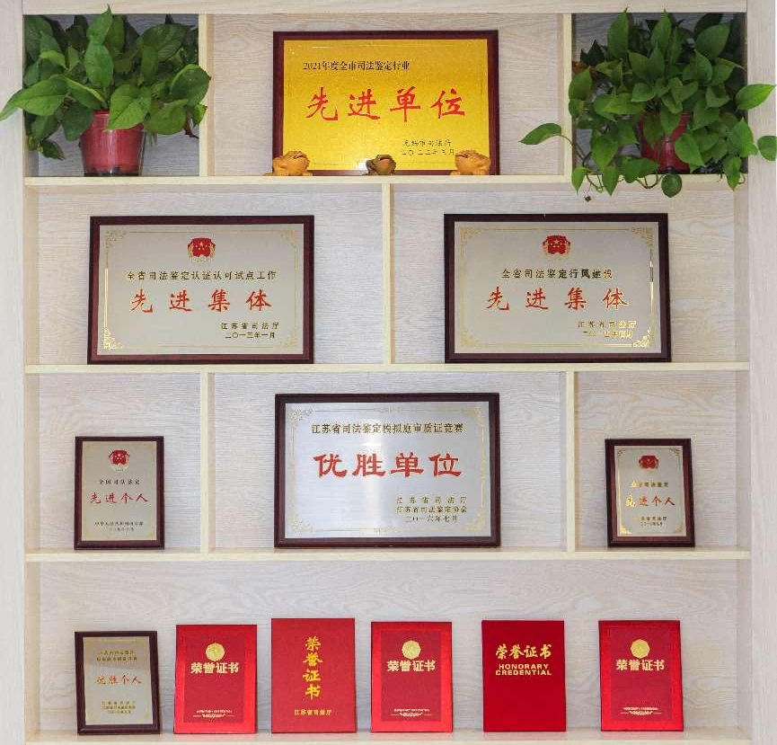 2022年本机构获得“江苏省公共法律服务工作成绩突出集体”荣誉称号,鉴定人陆晓明、曹婧、唐庆获得“全市司法鉴定行业先进个人”荣誉称号;